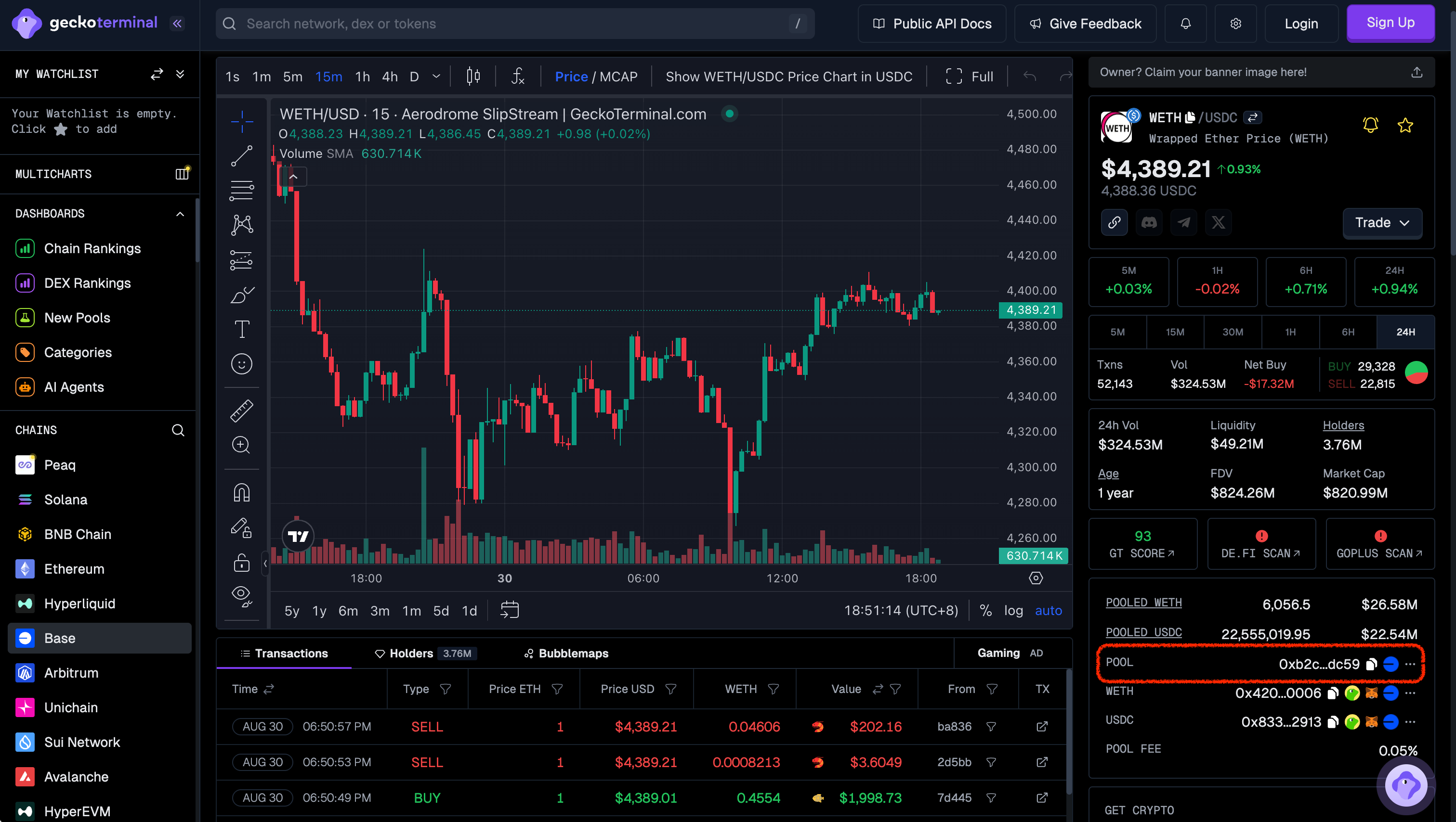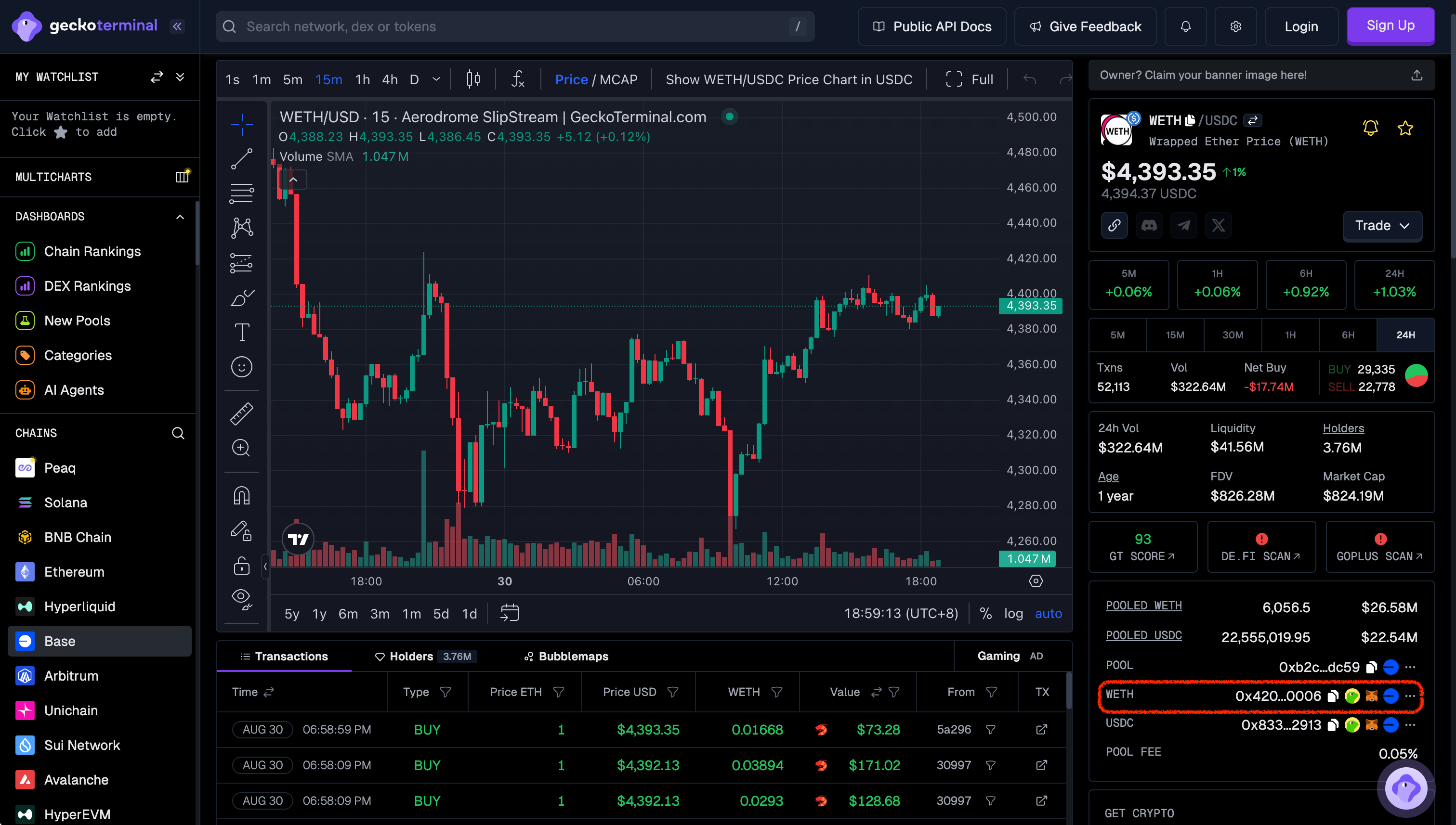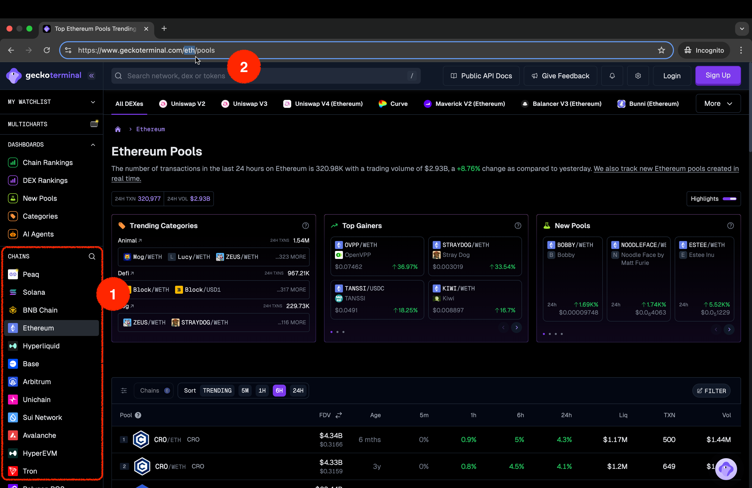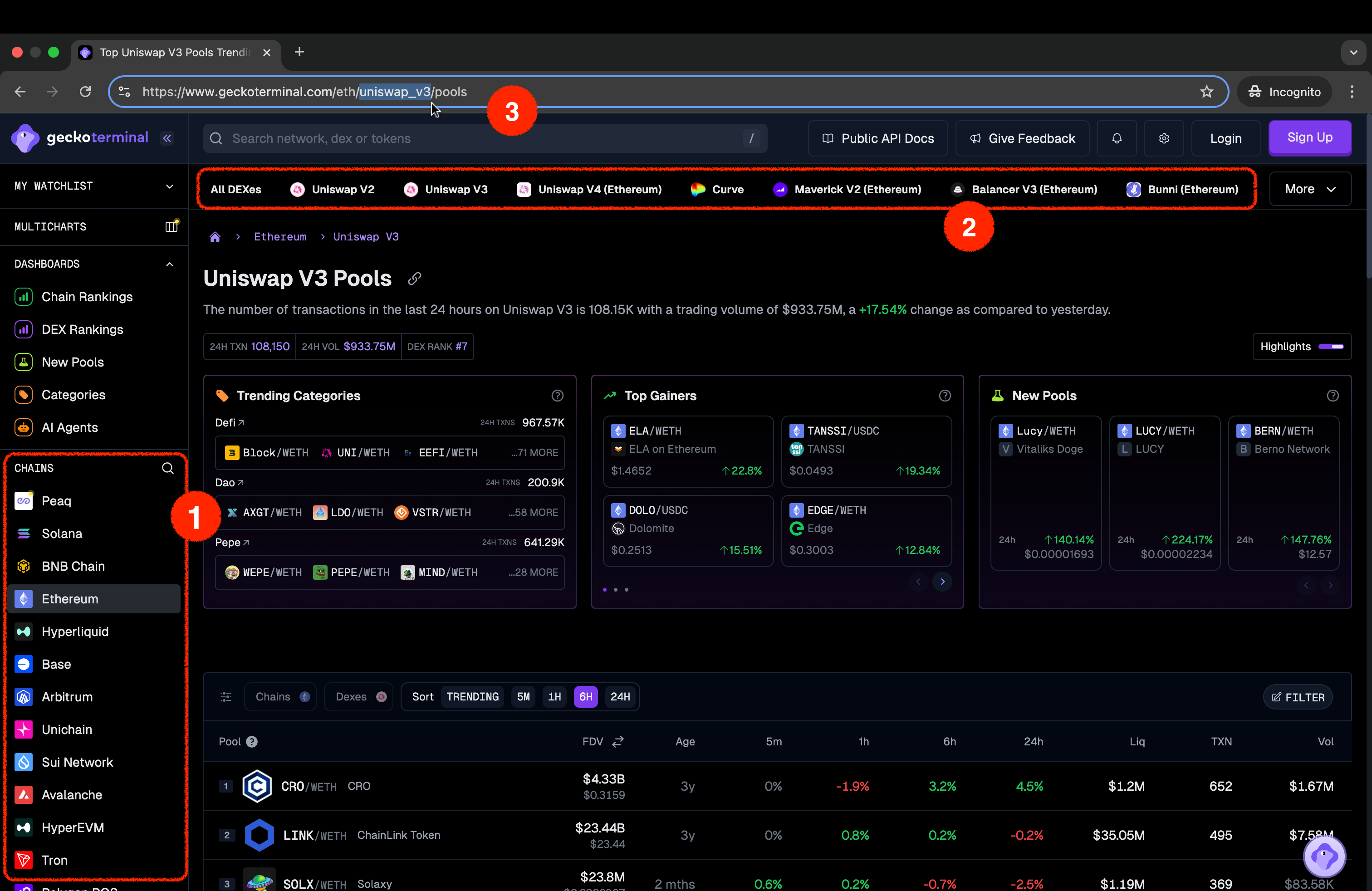 - Choose the DEX from the DEXs List on the top (e.g. Uniswap V3).