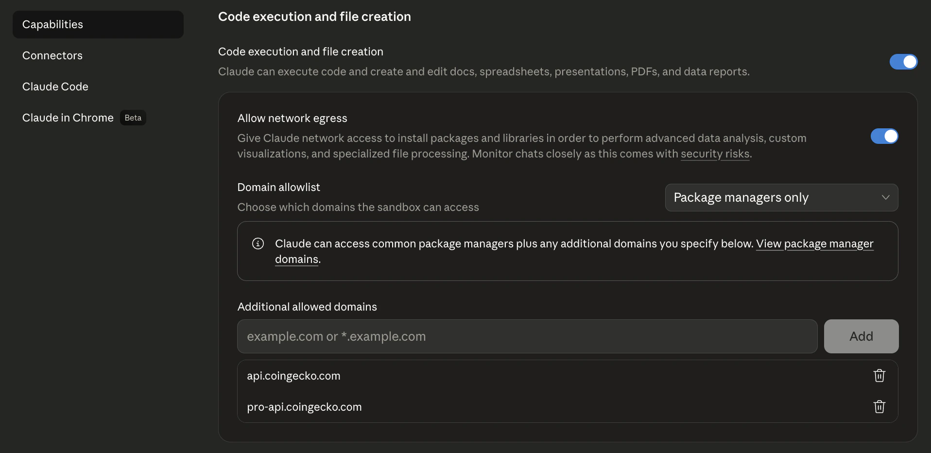 Allowlist CoinGecko domains (Claude paid plans only)