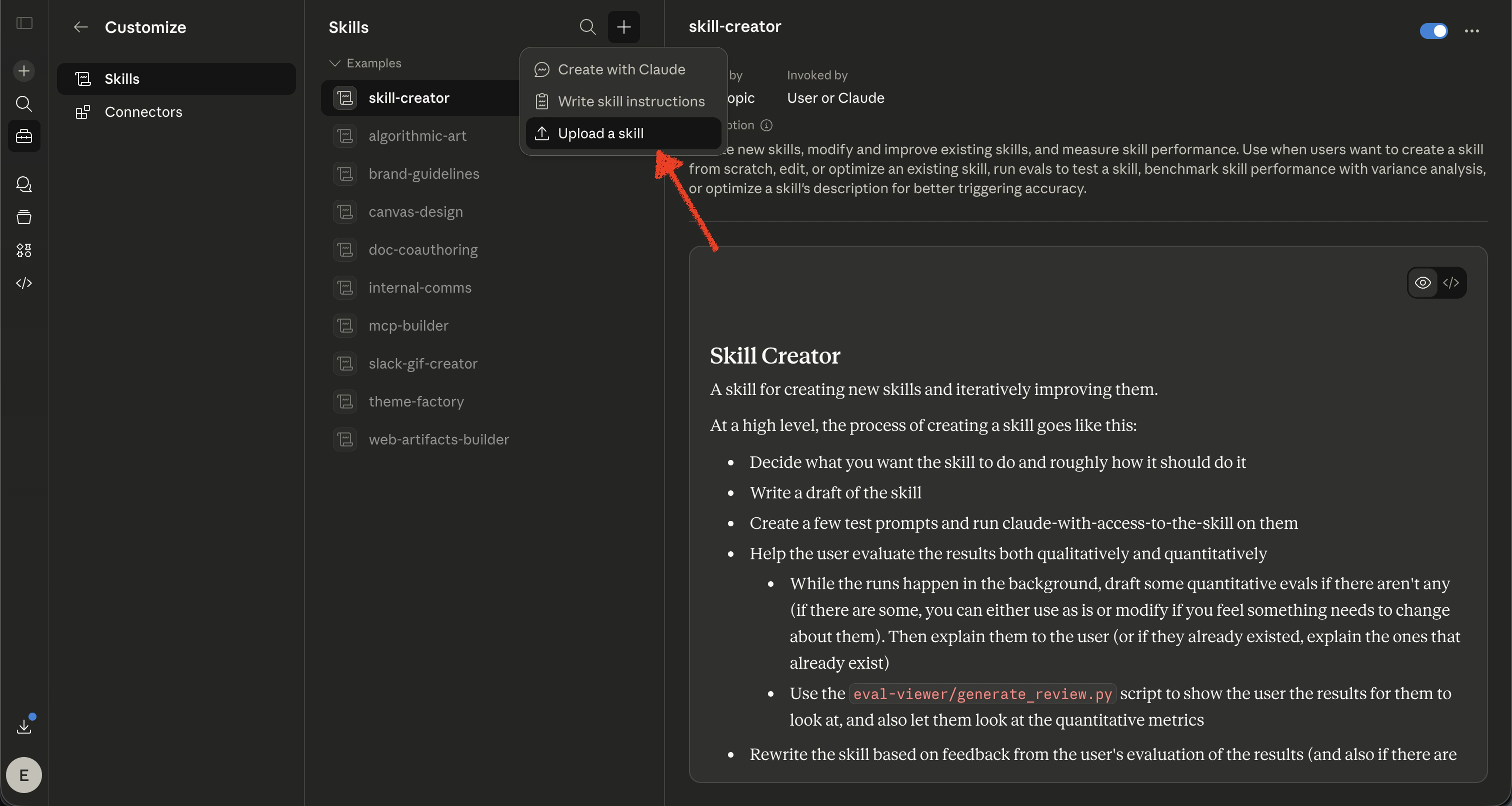 - Visit https://claude.ai/customize/skills