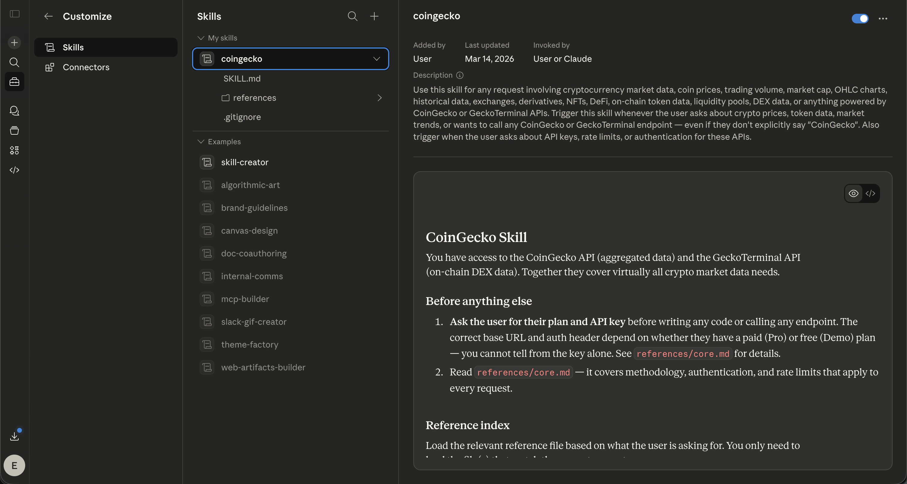 *see github.com/coingecko/skillsSetting up for Claude.ai