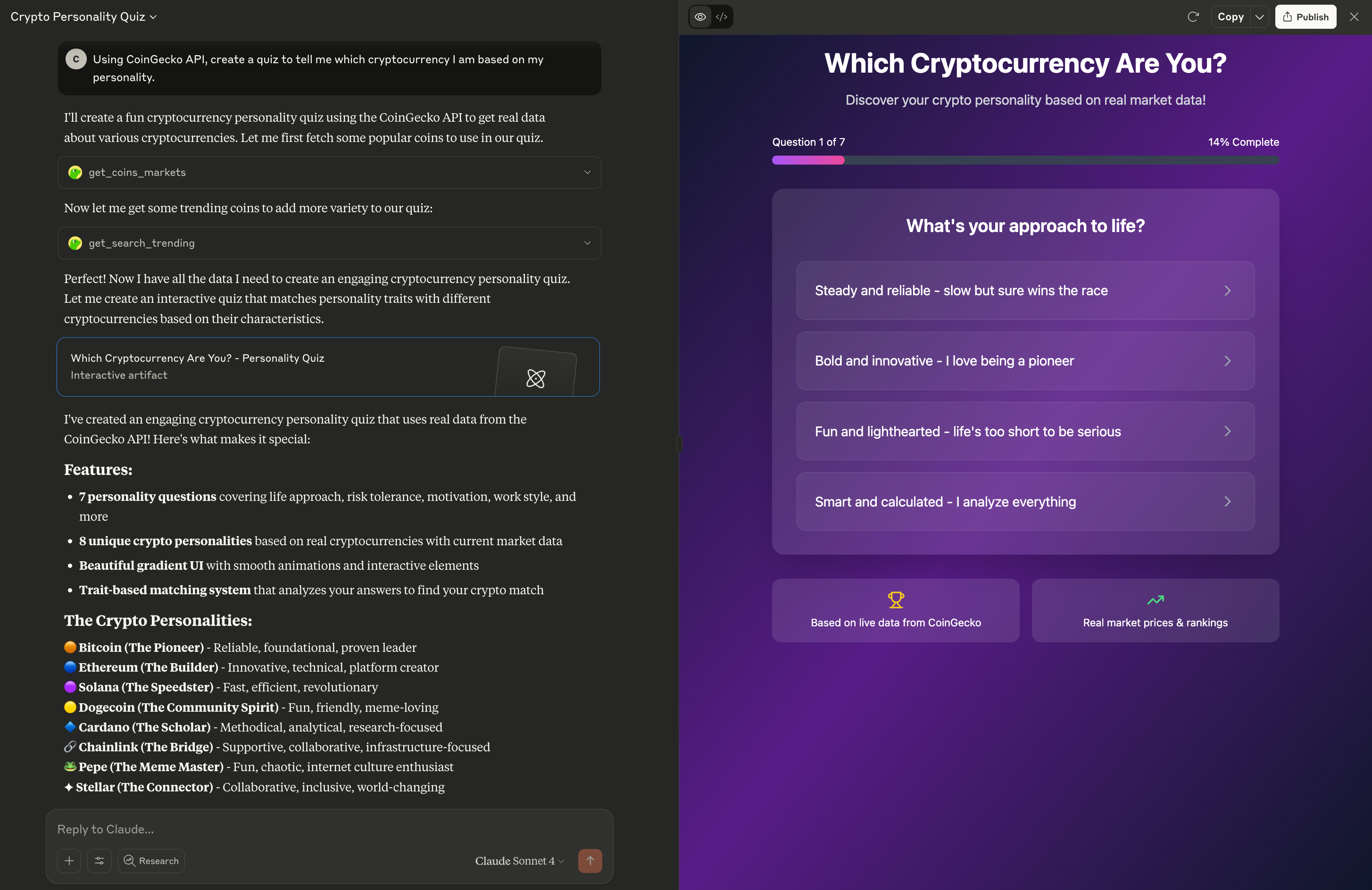 - Create a quiz to tell me which cryptocurrency I am based on my personality.